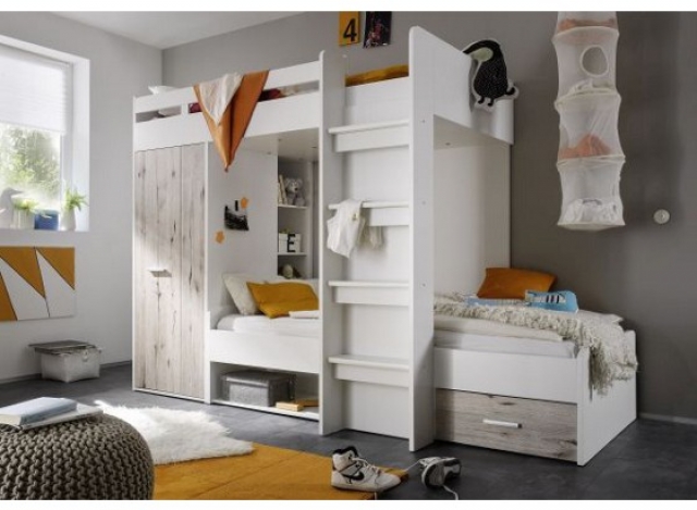 V menším pokoji je ideální volbou tzv. multifunkční dětská postel, která zároveň nahradí i postel s úložným prostorem. Pro menší ratolest je možné dokoupit různé tunely či textilie. Tím jí poskytneme rozptýlení, ale zároveň i prostor pro hraní. Některé postele mají i skluzavku, což umožňuje snadnější a zábavnější slézání z postele.