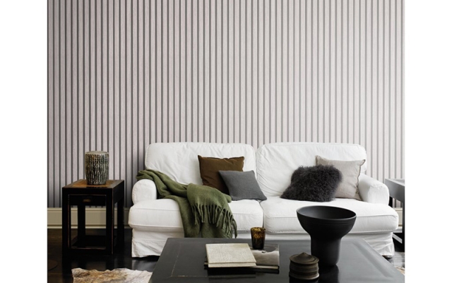 Za pohovkou v obýváku: Tapeta na stěně, u které stojí sedací souprava, automaticky vytváří hlavní relaxační zónu a vizuálně ji odděluje od jídelního koutu nebo pracovní části.